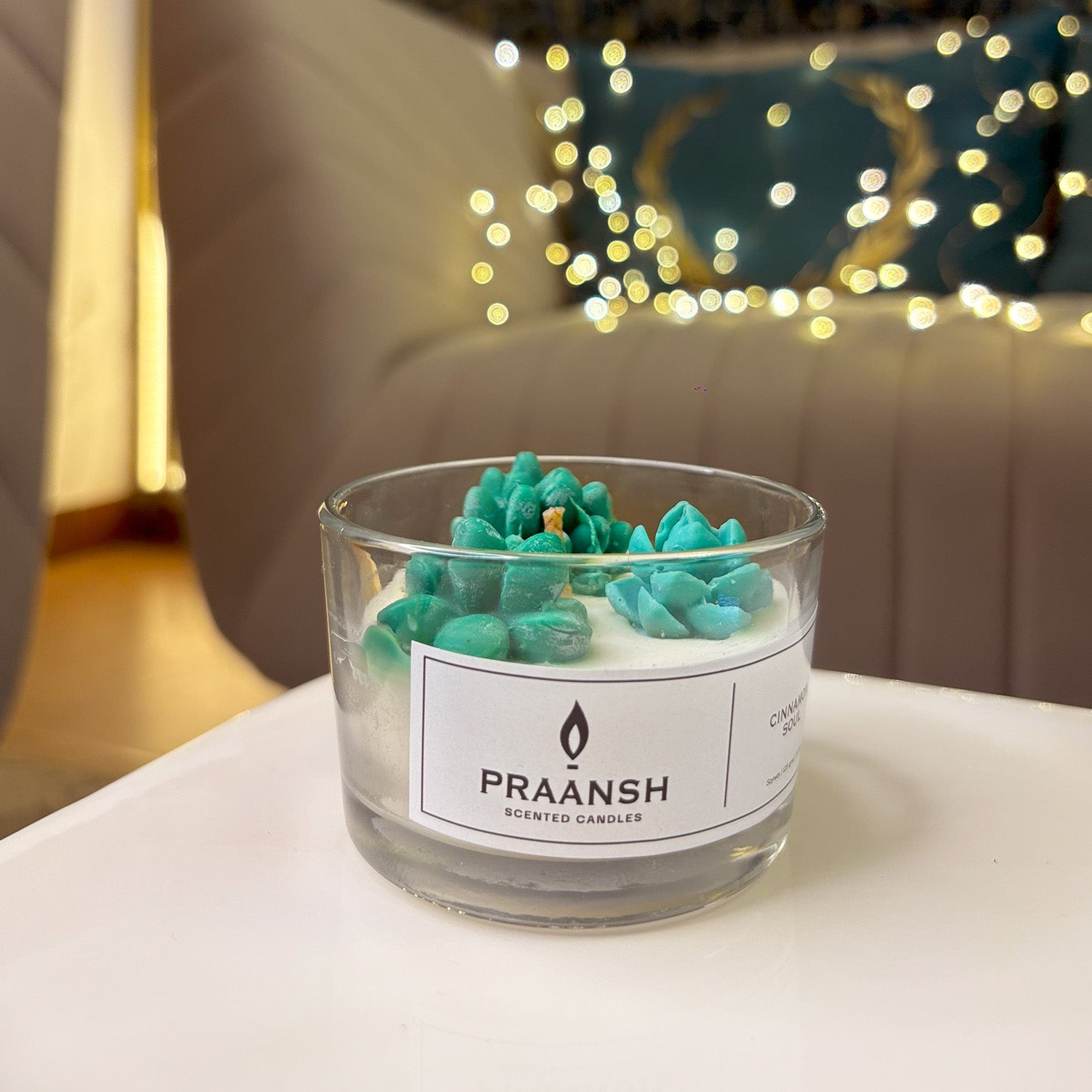 Crafted in a succulent-inspired jar, this candle brings the spicy embrace of cinnamon into your home. Perfect for autumn nights or intimate dinners, it balances nature’s freshness with festive warmth.