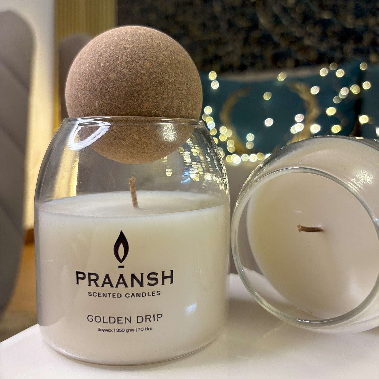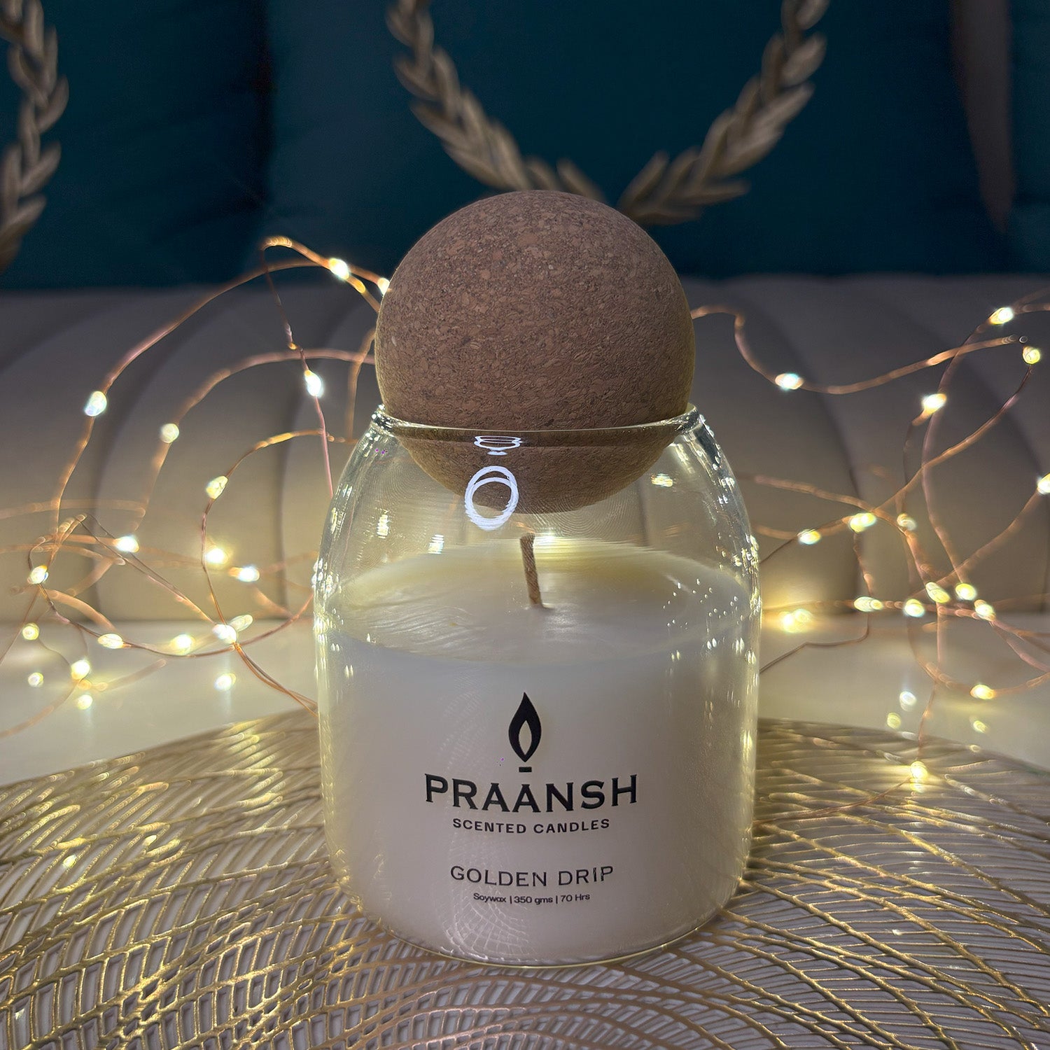 Golden Drip - Cork Ball Jar Candle with Blu Espresso Coffee Fragrance