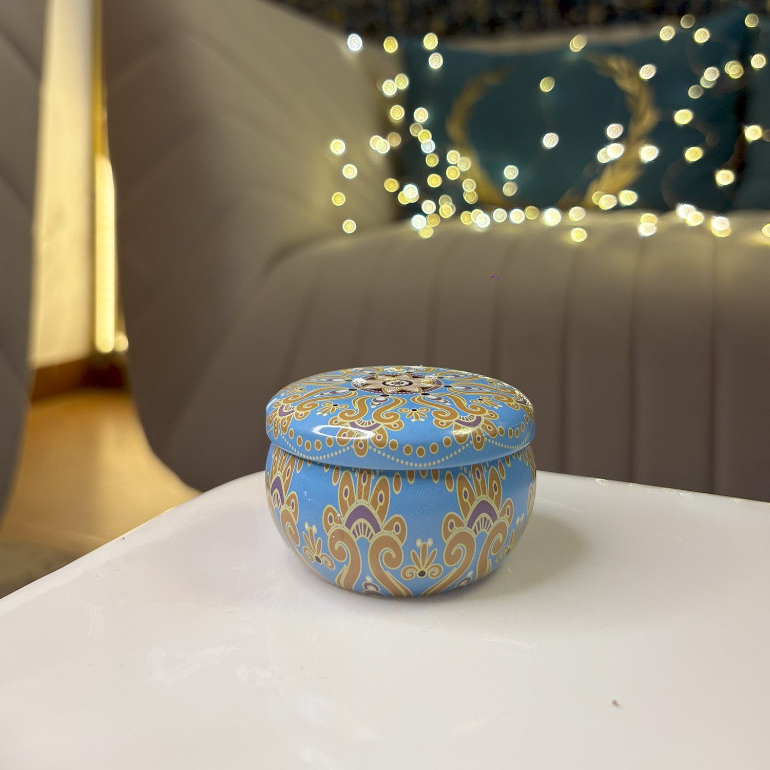 The Mandala Blue Candle carries the soothing fragrance of fresh mogra, reminiscent of gajra-adorned evenings and serene rituals. Its mandala design casts a calming glow, turning any corner into a peaceful sanctuary.